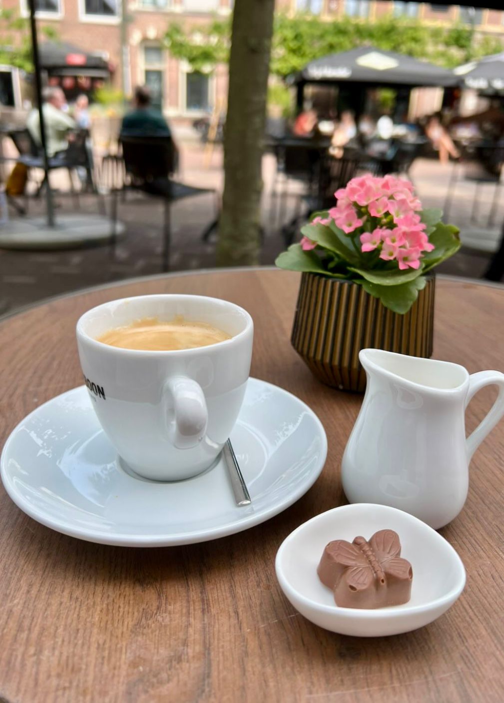 U kunt in onze tearoom genieten van lekkere koffie van Cook&Boon, losse thee voor elk gemoed en echte chocolademelk met de beste Belgische chocolade van Callebaut.